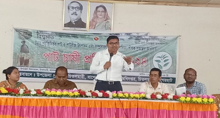 উপজেলা কৃষি সম্প্রসারণ অধিদপ্তরের আয়োজনে বাগেরহাটের চিতলমারীতে ২০২৪-২৫ অর্থ বছরে রবি মৌসুম কৃষকদের মাঝে বোরো ধানের (উফসী) সমলয় চাষাবাদের প্রদর্শণী স্থাপনের নিমিত্তে কৃষি প্রণোদনা কর্মসূচি এর আওতায় রাইচ ট্রান্সপ্লান্টারের মাধ্যমে ৫০ একর জমিতে ধান রোপণ কার্যক্রমের শুভ উদ্বোধন করা হয়েছে। রবিবার (৫জানুয়ারি) সকাল ১১টায় উপজেলা কলাতলা ইউনিয়নে রাজনগর এলাকায় কৃষি অফিসার কৃষিবিদ শংকর কুমার মজুমদার উপপরিচালক কৃষি সম্প্রসারণ অধিদপ্তর, খামারবাড়ি, বাগেরহাট এর সভাপতিত্বে প্রধান অতিথি হিসেবে শুভ উদ্বোধন করেন ও বক্তব্য রাখেন, জেলা প্রশাসক আহমেদ কামরুল হাসান। বিশেষ অতিথি হিসেবে বক্তব্য রাখেন, উপজেলা নির্বাহী অফিসার তাপস পাল, প্রাণীসম্পদ অফিসার আহমেদ ইকবাল, সিনিয়র মৎস্য অফিসার শেখ আসাদুল্লাহ, প্রকৌশলী অফিসার মোঃ সাদ্দাম হোসেন, জনস্বাস্থ্য প্রকৌশলী অফিসার মোঃ আজমল হোসেন, সমাজসেবা অফিসার মোঃ সোহেল পারভেজ, সমবায় অফিসার মোল্লা সাইফুল ইসলাম, মহিলা বিষয়ক অফিসার মোঃ হাফিজুর রহমান, যুব উন্নয়ন অফিসার শেখ মোঃ আজগর আলী প্রমুখ।অনুষ্ঠান সঞ্চালনে ছিলেন উপজেলা কৃষি অফিসার কৃষি বিদ মোঃ সিফাত আল মারুফ। বাস্তবায়নে ছিলেন উপজেলা প্রশাসন।