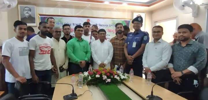 ইউএনও পরিমল কুমার সরকার এর সভাপতিত্বে বিরামপুর উপজেলা কনফারেন্স রুমে অনুষ্ঠিত এই সংবর্ধনা অনুষ্ঠানে একে একে উপস্থিত হন বিরামপুর উপজেলা পরিষদের চেয়ারম্যান খাইরুল আলম রাজু, বিরামপুর পৌরসভার মেয়র অধ্যক্ষ আক্কাস আলী, বিরামপুর থানা নির্বাহী কর্মকর্তা সুমন কুমার মহন্ত সহ উপজেলা পরিষদের বিভিন্ন দাপ্তরিক কর্মকর্তা, জনপ্রতিনিধি, গণ্যমান্য ব্যক্তিবর্গ, নানান শ্রেণি-পেশার মানুষ, অভিভাবক এবং বিভিন্ন প্রিন্ট ও ইলেক্ট্রনিক মিডিয়ার সাংবাদিকবৃন্দ সহ বিরামপুরের ক্রিড়াঙ্গনের পরিচিত মুখগুলো।