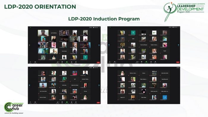 করোনা মহামারীর সময় বিশ্ব যখন থমকে গেছে ঠিক তখনই জগন্নাথ বিশ্ববিদ্যালয় ক্যারিয়ার ক্লাবের এলডিপি-২০ এর নিয়োগ ও নিয়োগ পরবর্তী অনুষ্ঠান জুম এপসের মাধ্যমে শেষ হয়। অনুষ্ঠানে প্রধান অতিথি হিসেবে উপস্থিত ছিলেন জগন্নাথ বিশ্ববিদ্যালয়ের মাননীয় উপাচার্য অধ্যাপক ড মীজানুর রহমান। এছাড়াও উপস্থিত ছিলেন ক্লাবের মাননীয় প্রতিষ্ঠাকালীন চীফ মডারেটর, মডারেটর, অ্যালামনাই সদস্য ও সদ্য নিয়োগ প্রাপ্ত সদস্যবৃন্দ।