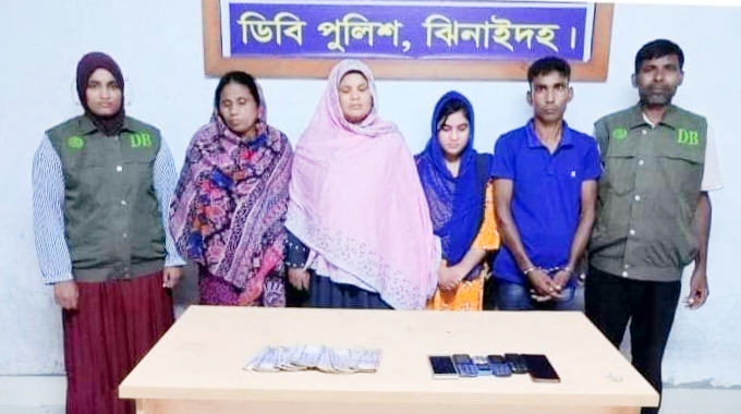 এ ঘটনায় ভূক্তভূগী মোঃ হারুনর রশীদ এর অভিযোগের প্রেক্ষিতে ঝিনাইদহ জেলা পুলিশ সুপার জনাব মোঃ আজিম-উল-আহসান এর নির্দেশনায় এবং অতিরিক্ত পুলিশ সুপার মোঃ ইমরান জাকারিয়া ও জেলা গোয়েন্দা শাখার ইনচার্জ মো: শাহিন উদ্দিন এর সার্বিক তত্ত্বাবধানে জেলা গোয়েন্দা শাখা ঝিনাইদহ এর এসআই আবু সায়েমের নেতৃত্বে একটি টিম ঝিনাইদহ থানা ও কালীগঞ্জ থানা এলাকায় অভিযান পরিচালনা করে অপরাধ চক্রের সদস্য সদর উপজেলার কুলফাডাঙ্গা গ্রামের বাবলু মন্ডলের স্ত্রী মোছাঃ নুর নেহা (৪০), একই গ্রামের মসলেম মন্ডলের ছেলে আজিম মন্ডল(৩৫), করাতিপাড়ার হাসান মন্ডলের স্ত্রী জাহানারা বেগম(৬০), কালিগঞ্জ উপজেলার রাকড়া গ্রামের আব্দুল জলিল মন্ডলের মেয়ে রুহানি আক্তার ওরফে শিলা(২০) দেরকে শুক্রবার রাত আনুমানিক সাড়ে দশটার দিকে গ্রেফতার করতে সক্ষম হয়।