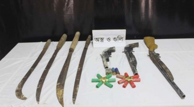 ঘটনাস্থল থেকে তিনটি অস্ত্র ও ১৩ রাউন্ড গুলি উদ্ধার করা হয়েছে বলে জানিয়েছে র‍্যাব।