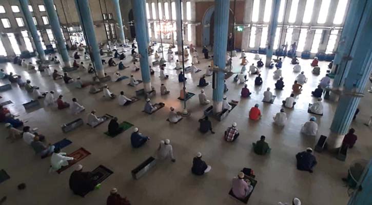 শুক্রবার দুপুরে রাজধানী ঢাকার প্রাণকেন্দ্র পল্টনে জাতীয় মসজিদটিতে দেখা যায়, প্রবেশের আগে সবার হাত ধোয়ানো হচ্ছে। সেই সঙ্গে সবাই মাস্ক পরছেন কিনা সেটা নিশ্চিত হয়েই মসজিদে প্রবেশ করতে দেয়া হচ্ছে। আর নির্দিষ্ট দূরত্ব রেখে নামাজের ব্যবস্থা করা হয়েছে।আগে প্রাণঘাতী করোনার সংক্রমণ রোধে জনসমাগম এড়াতে মসজিদে না এসে ঘরে নামাজ আদায় করার নির্দেশ দেয়ার পর শুধুমাত্র নির্দিষ্ট সংখ্যক মুসল্লি নিয়ে নামাজ হতো। এজন্য মসজিদে জামায়াত চালু রাখার প্রয়োজনে খতিব, ইমাম, মুয়াজ্জিন, খাদেম মিলে পাঁচ ওয়াক্তের নামাজে অনধিক পাঁচজন এবং জুমার জামায়াতে অনধিক ১০ জন শরিক হতে পারতেন। কিন্তু সম্প্রতি এই বিধিনিষেধ তুলে নেয়ার পর এটাই প্রথম জুমা।