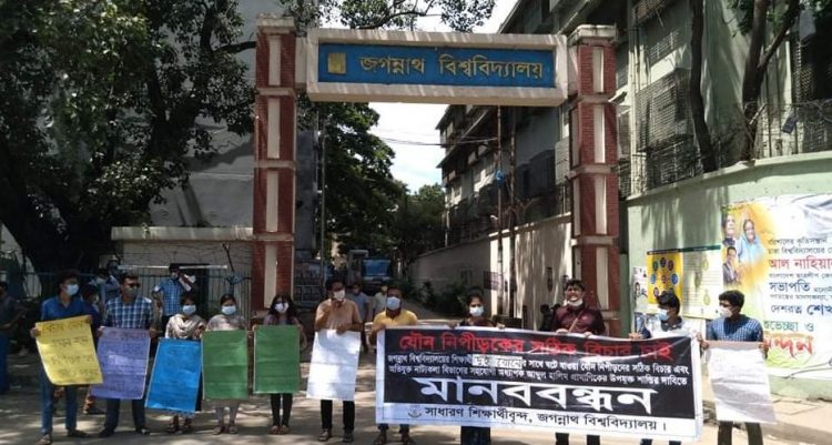 যৌন নিপিড়নের অভিযোগে লঘুদণ্ডপ্রাপ্ত জগন্নাথ বিশ্ববিদ্যালয়ের (জবি) নাট্যকলা বিভাগের শিক্ষক আব্দুল হালিম প্রামাণিকের উপযুক্ত শাস্তির দাবিতে মানববন্ধন করেছেন সাধারণ শিক্ষার্থীরা।