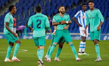 স্প্যানিশ লা লিগায় রিয়াল সোসিয়েদাদকে হারিয়ে লিগ টেবিলের শীর্ষে উঠে গেল জিনেদিন জিদানের দল। প্রতিপক্ষের মাঠে রবিবার রাতে লা লিগার ম্যাচটি ২-১ গোলে জিতেছে রিয়াল মাদ্রিদ। সার্জিও রামোসের গোলে দলটি এগিয়ে যাওয়ার পর ব্যবধান দ্বিগুণ করেন করিম বেনজেমা। সোসিয়েদাদের একমাত্র গোলটি মিকেল মেরিনোর।
